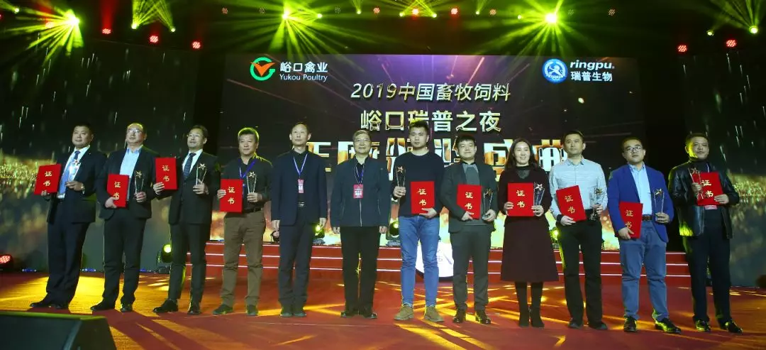 12月14日晚上舉行的“峪口瑞普之夜——2019中國畜牧飼料行業(yè)年度頒獎盛典”對2019年“十大商業(yè)模式創(chuàng)新獎、十大優(yōu)秀企業(yè)文化獎、十大品牌肉蛋奶創(chuàng)立獎”進行了隆重表彰。